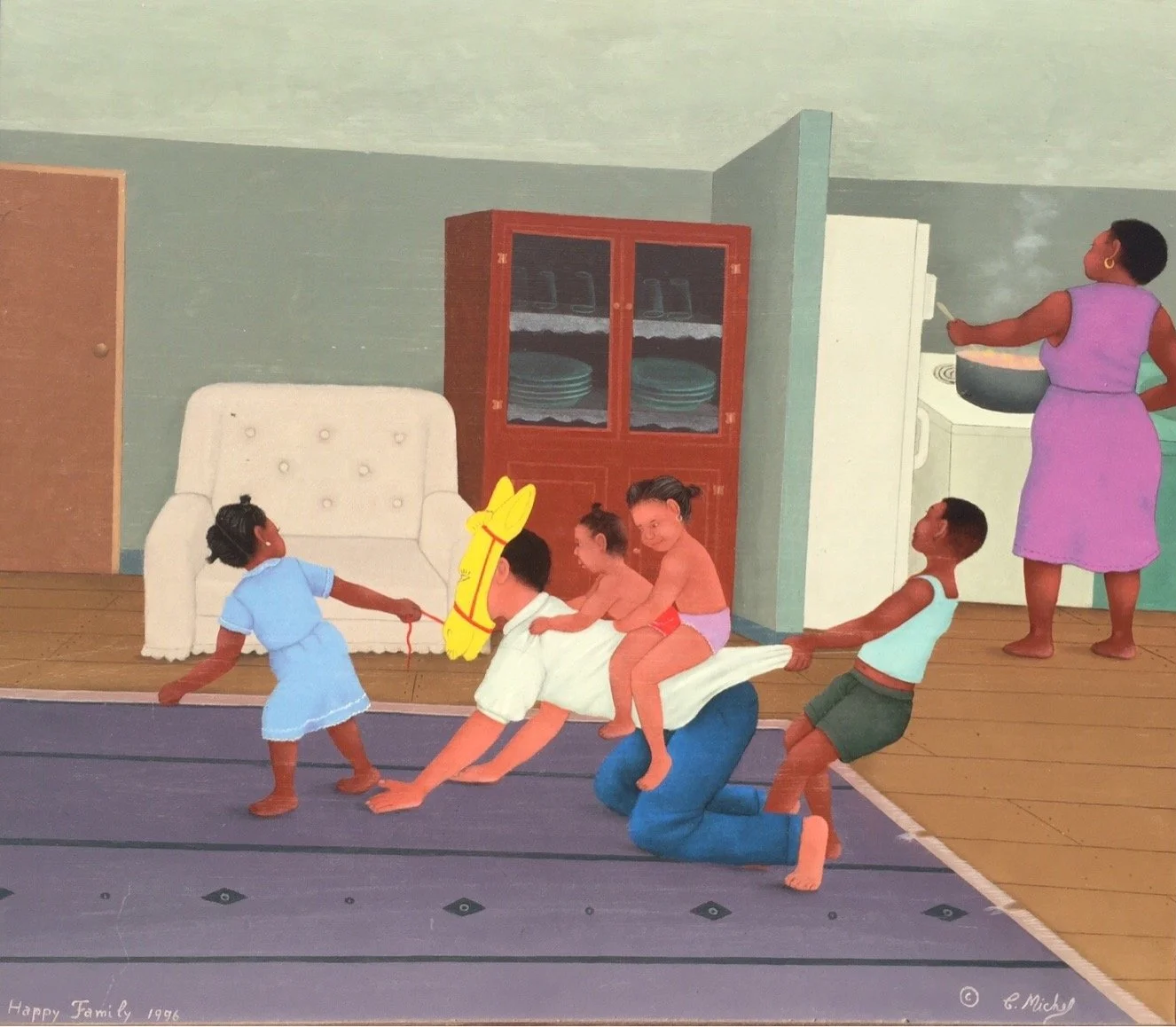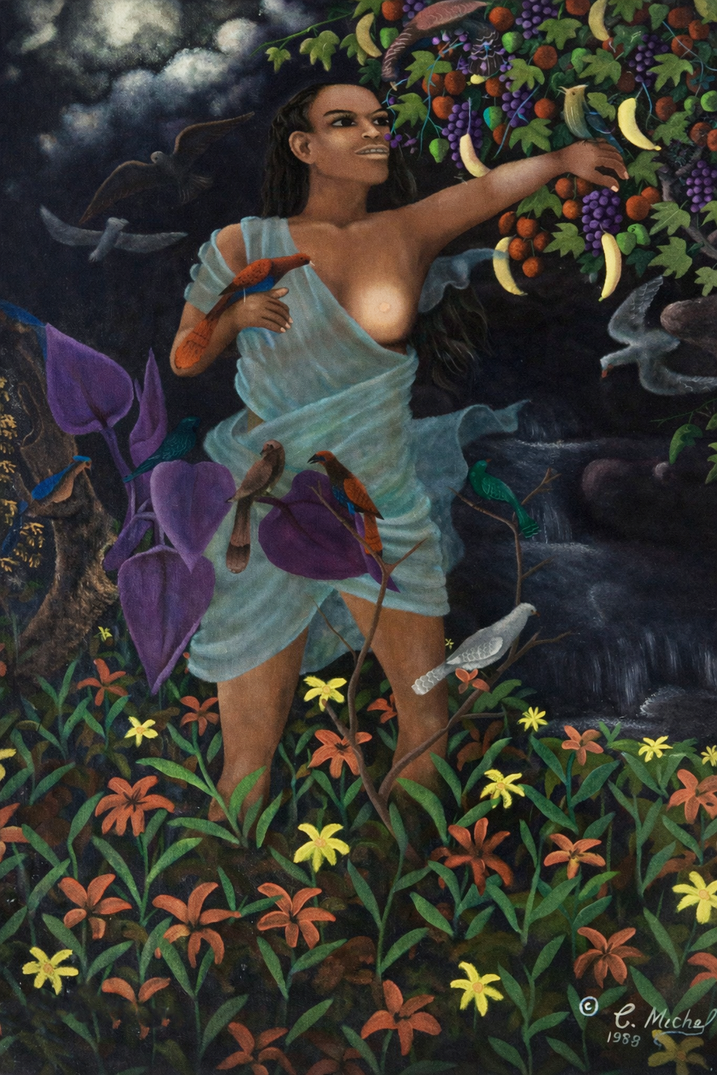 Experience the world of Christian Michel (b. 1949, Cadouche, Haiti), where luminous color, spiritual intimacy, and gentle humor reveal a deeply personal, almost mystical connection to everyday Haitian life.