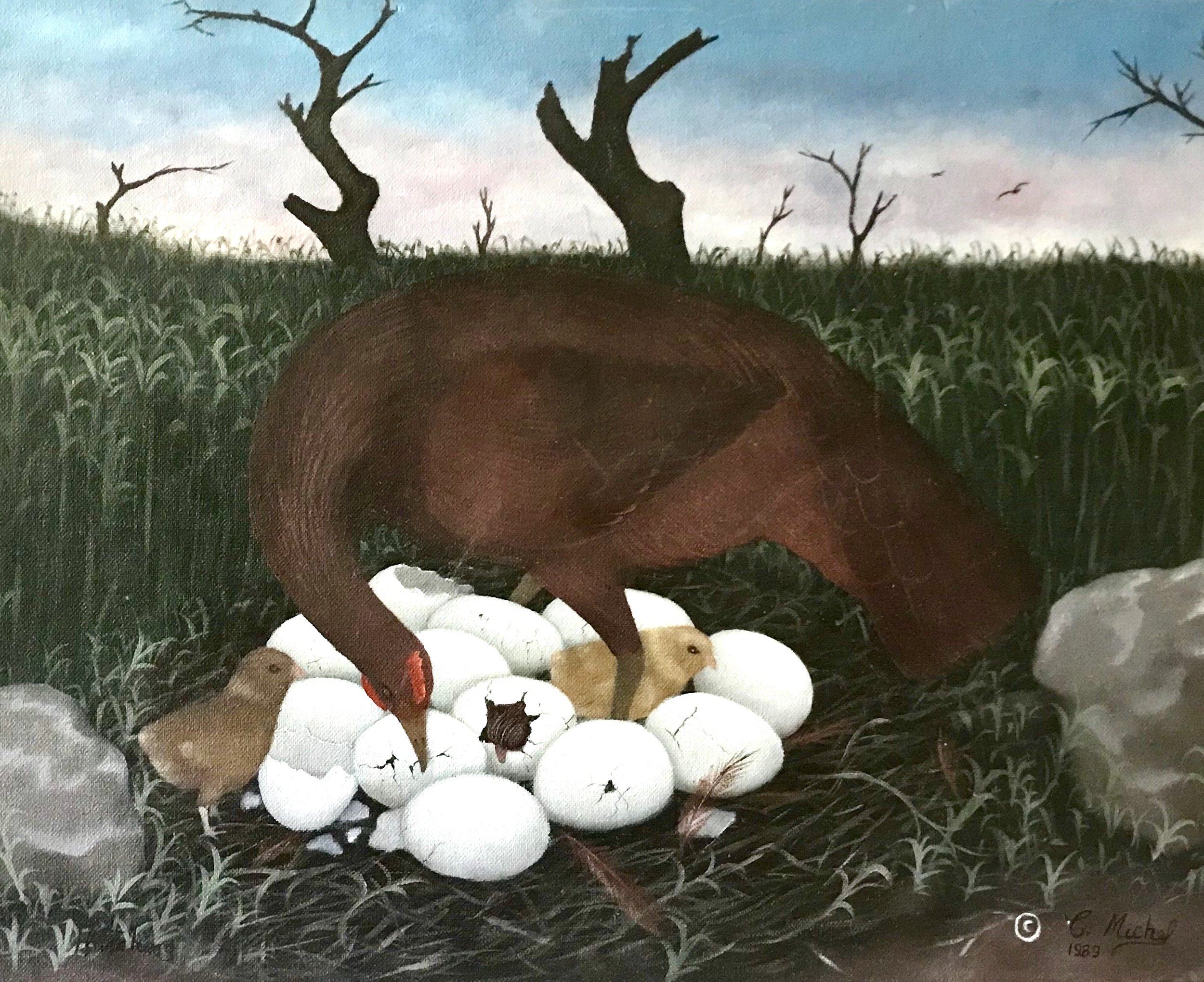 Christian Michel was born on June of 1949 in the northern area of Cadouche, near Cap-Haïtien, Haiti. In 1970, a very well-respected native painter, Mr. Charles Anatole, recognized his talent, befriended him and took a special interest in his development in the technique of oil painting and became his mentor. Under Mr. Anatole’s guidance, Michel developed his personal style of painting. His style encompasses the use of vibrant saturated colors, subjects in motion and the subtle use of humor.